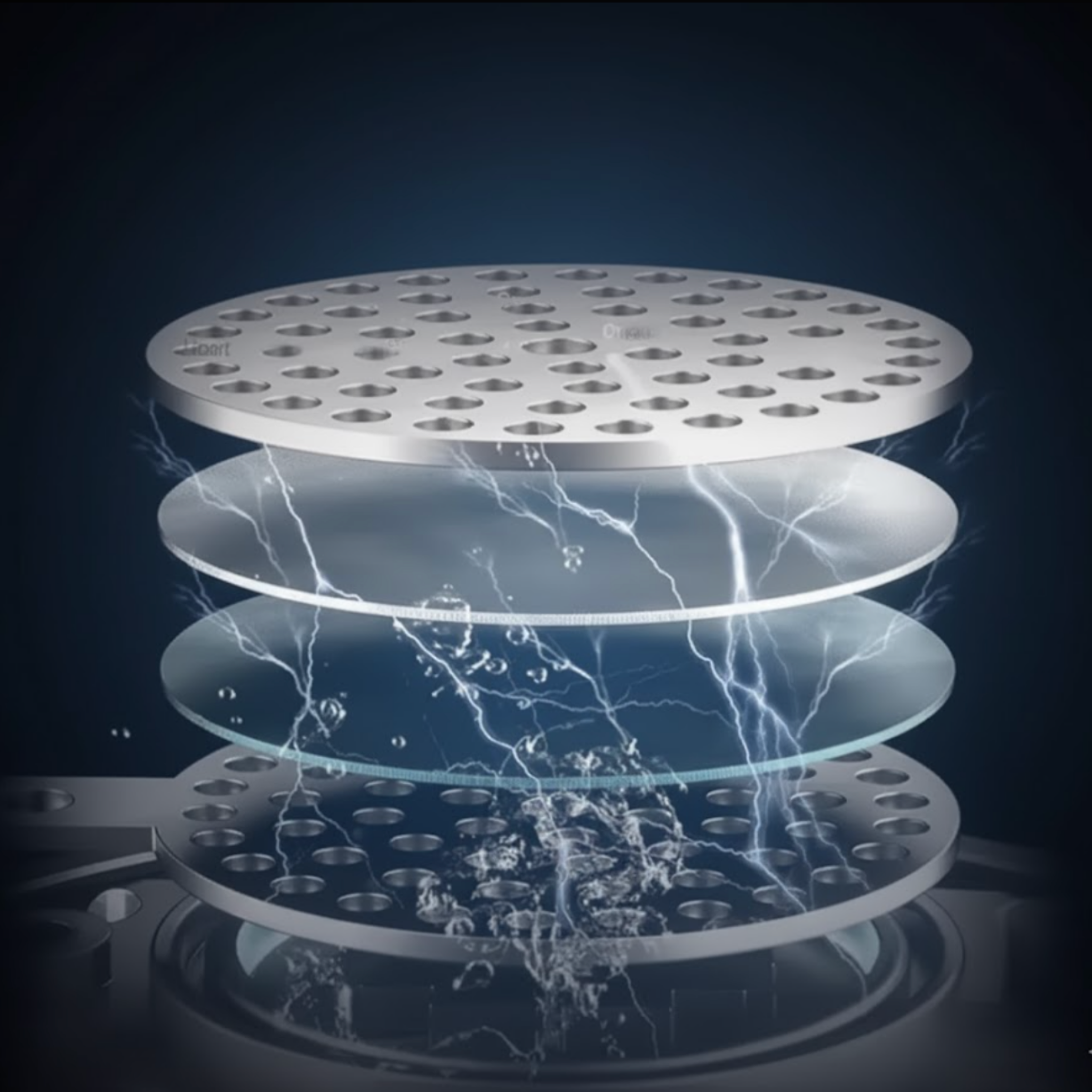 When turned on, an electric current passes through the electrodes, splitting your regular water molecules (H₂O) into hydrogen gas (H₂) and oxygen gas (O₂).